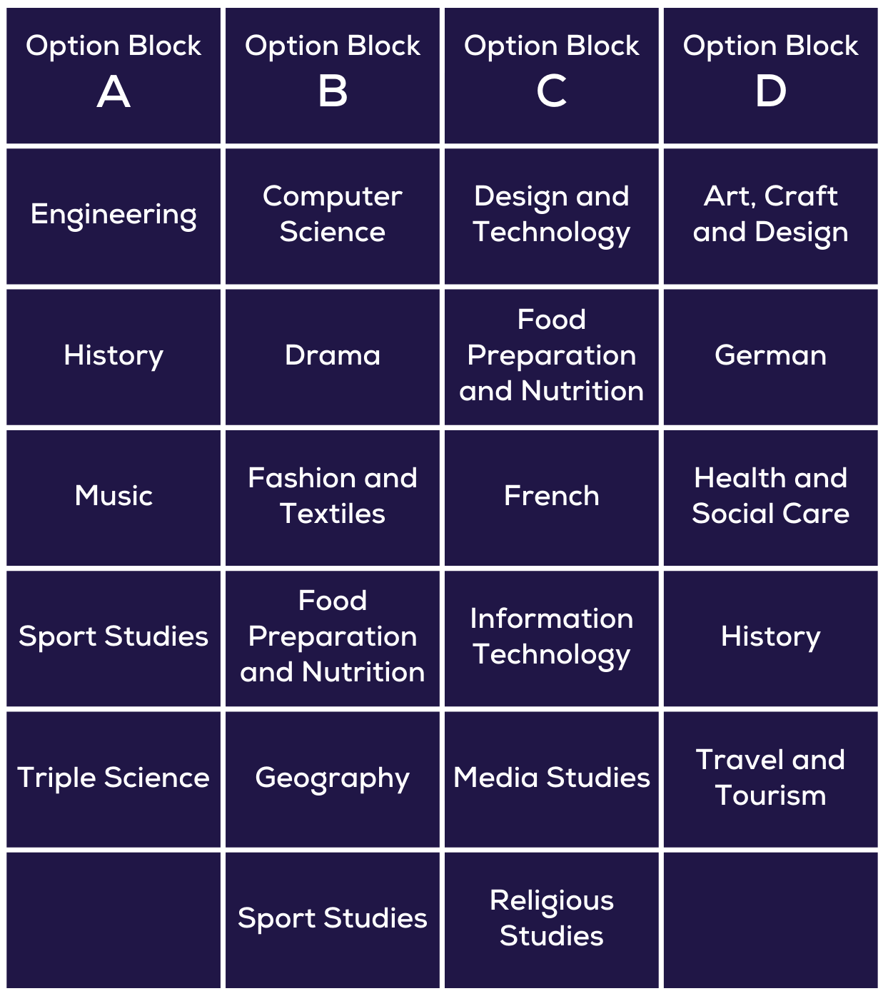 - Every pupil will have a dedicated discussion with their Form Tutor to finalise their choices and complete their Options Form in school.