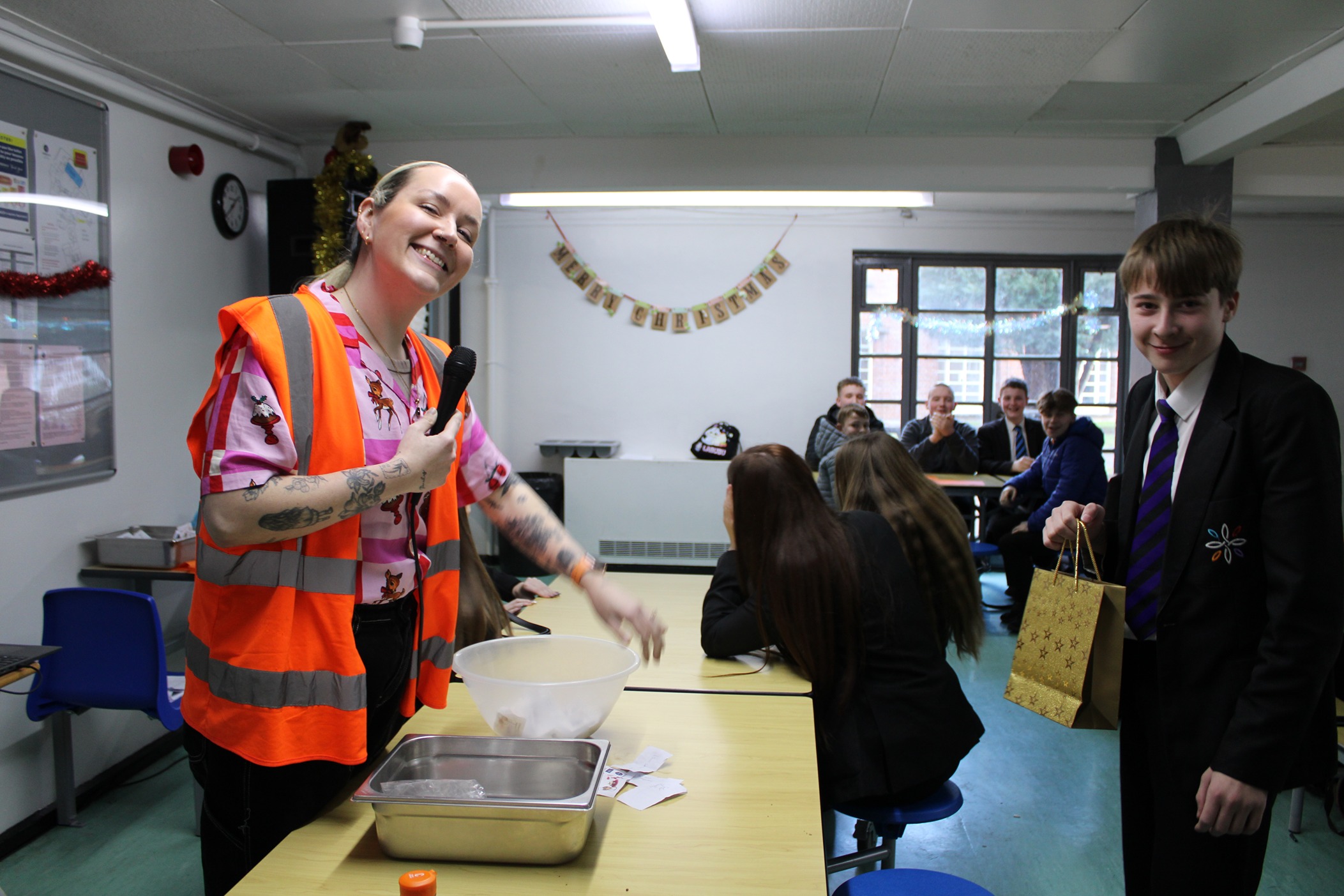 The dining hall was filled with music and laughter as KS3 and KS4 pupils sat down for their Christmas Lunch on Wednesday, 17th December. We hosted two sittings, ensuring that everyone—whether they ordered the festive roast or brought a packed lunch—could sit together and enjoy the celebration with their friends. With Christmas tunes playing and a raffle to top it off, it was the perfect way to get into the holiday spirit!