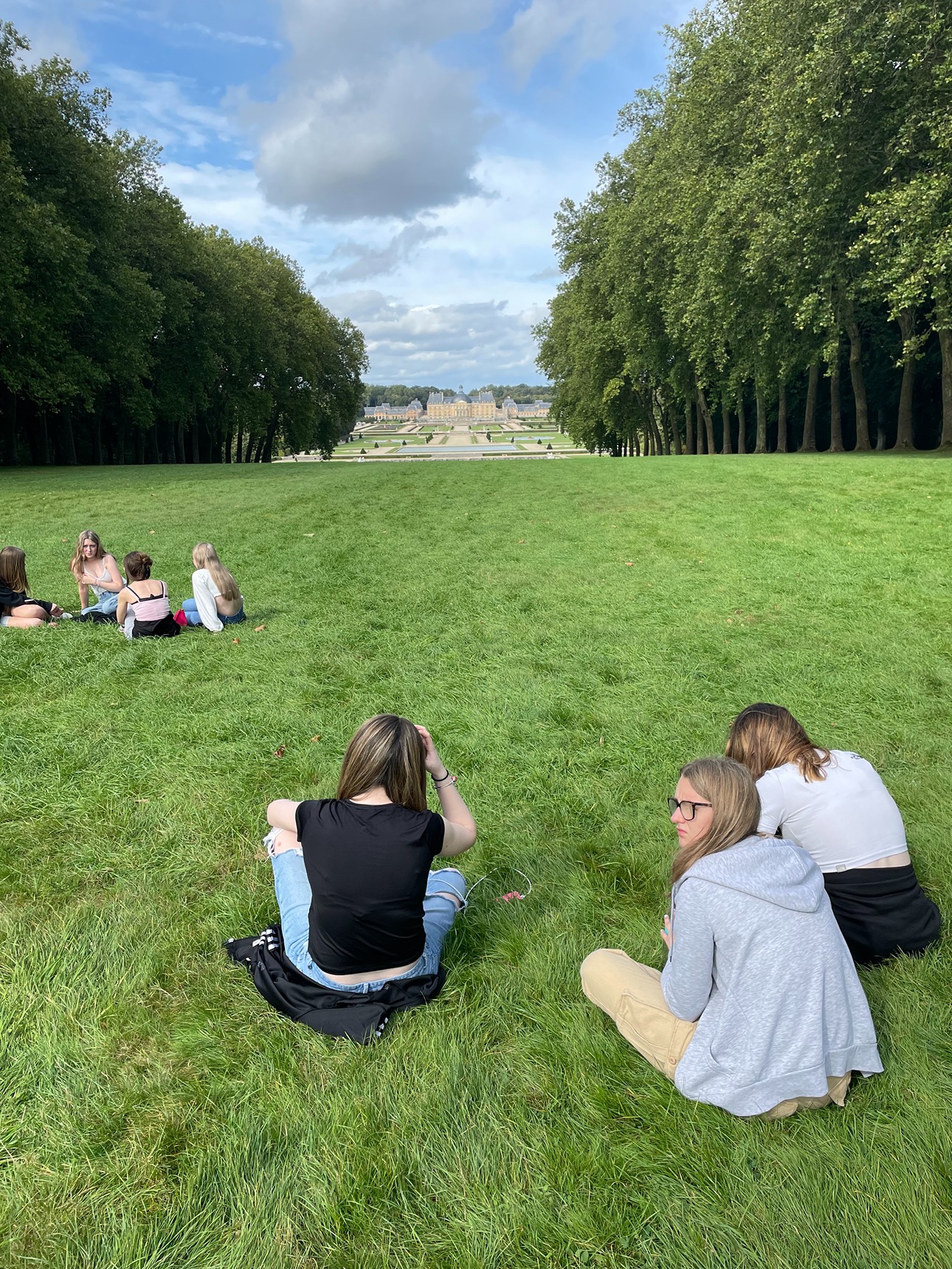 On Tuesday afternoon we explored a stunning castle, Vaux-le-Vicomte, the blueprint for the royal château at Versailles and the site of the ‘The Man in the Iron Mask’ legend. The weather was stunning, and we explored the vast formal gardens, taking in the fountains and statues, and including a long walk to the far end of the grounds to see the massive golden statue of Hercules on his horse. The beautiful views made the trek worthwhile.