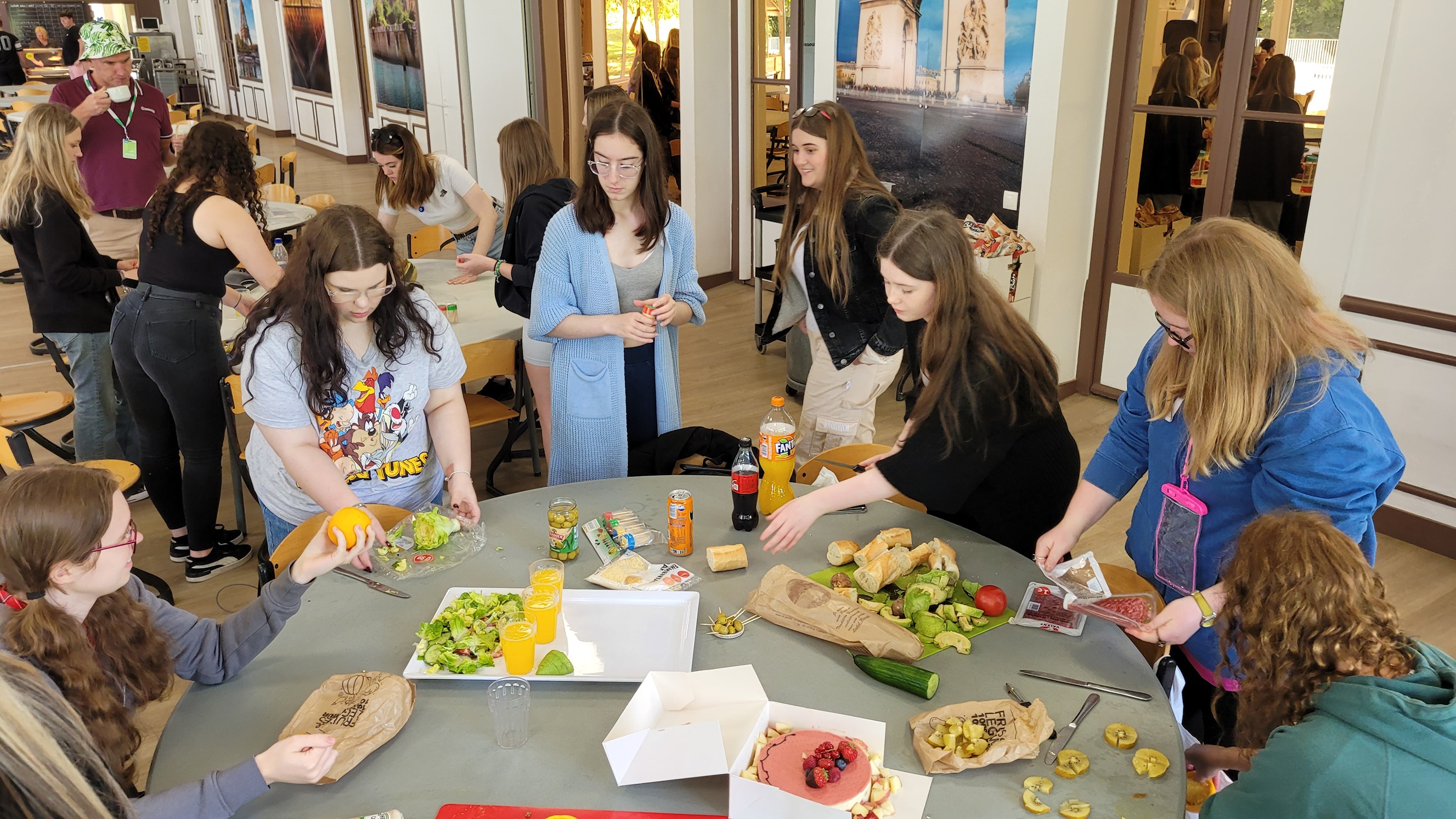 The most amazing part of the morning was shopping! Pupils practised their French conversational skills by purchasing ingredients for their lunch, and there was a race to see who could buy the biggest cream cake for pudding. We then returned to our base at CdGR and created masterpieces with what we’d bought, a little like a ‘Ready, Steady, Cook’ challenge. Needless to say, the competition was fierce, although “The A Team” won…but only just.