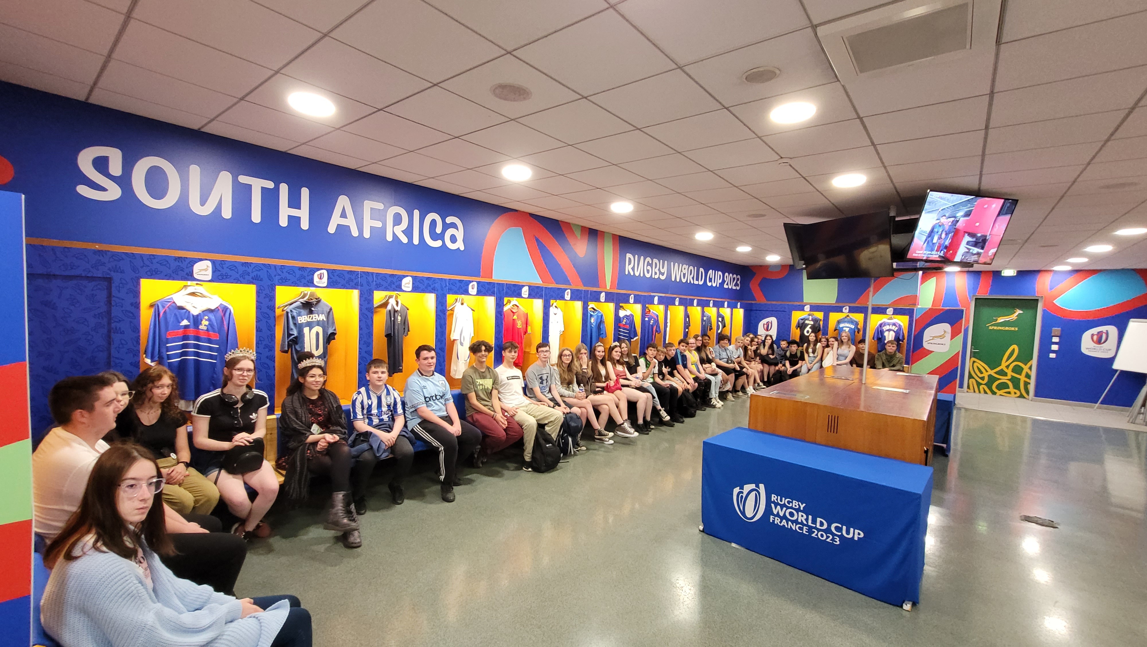 After the Louvre, we drove [slowly] through Paris to the Stade de France, the national sports stadium (so, the ‘French Wembley’). We had a private tour, including visiting the players’ changing rooms and the Presidential Suite, and we even ran down the tunnel towards the pitch. Our tour guide gave us fascinating facts along the way, such as the fact that the TV screens are as big as tennis courts – it’s that impressive. What really made this part of the trip was that the stadium was geared up to host the Rugby World Cup (South Africa vs Ireland), so it was fascinating to see everything adorned in the countries’ colours.