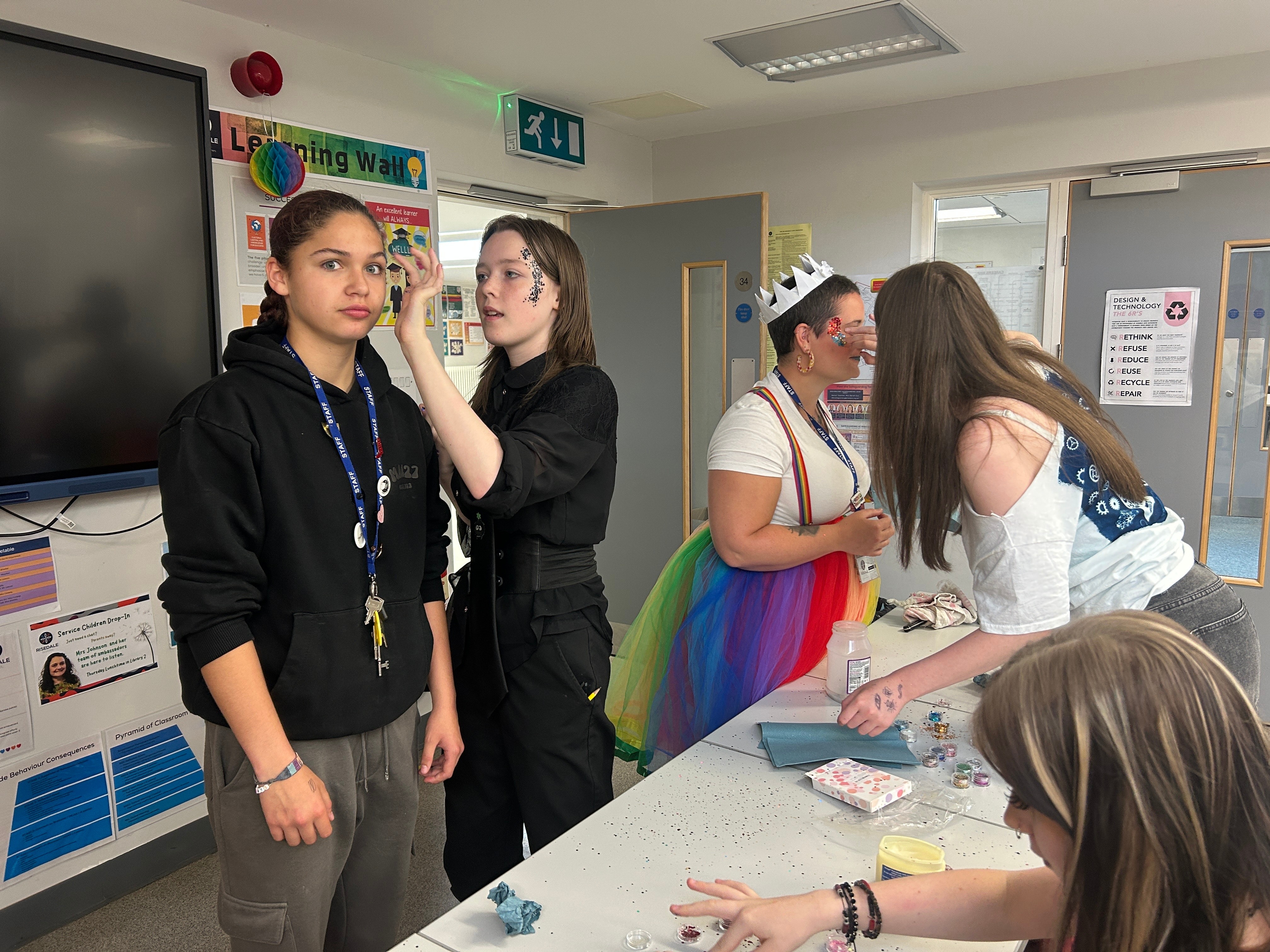 The pinnacle of our Pride celebrations was undoubtedly the ‘Dress with Pride’ Non-Uniform Day on Friday, 27th June. The school was awash with a kaleidoscope of bright colours, rainbows, and Pride-themed outfits as pupils enthusiastically participated, each donating £1 to a worthy cause. The festive atmosphere continued with pupils enjoying glitter face painting and a delicious Rainbow Bake Sale. All money raised from the non-uniform day, face painting, and bake sale went directly to support our very own LGBTQ+ Club, who do so much to support the school and our pupils. In total, the Risedale Family raised £284.00!!!