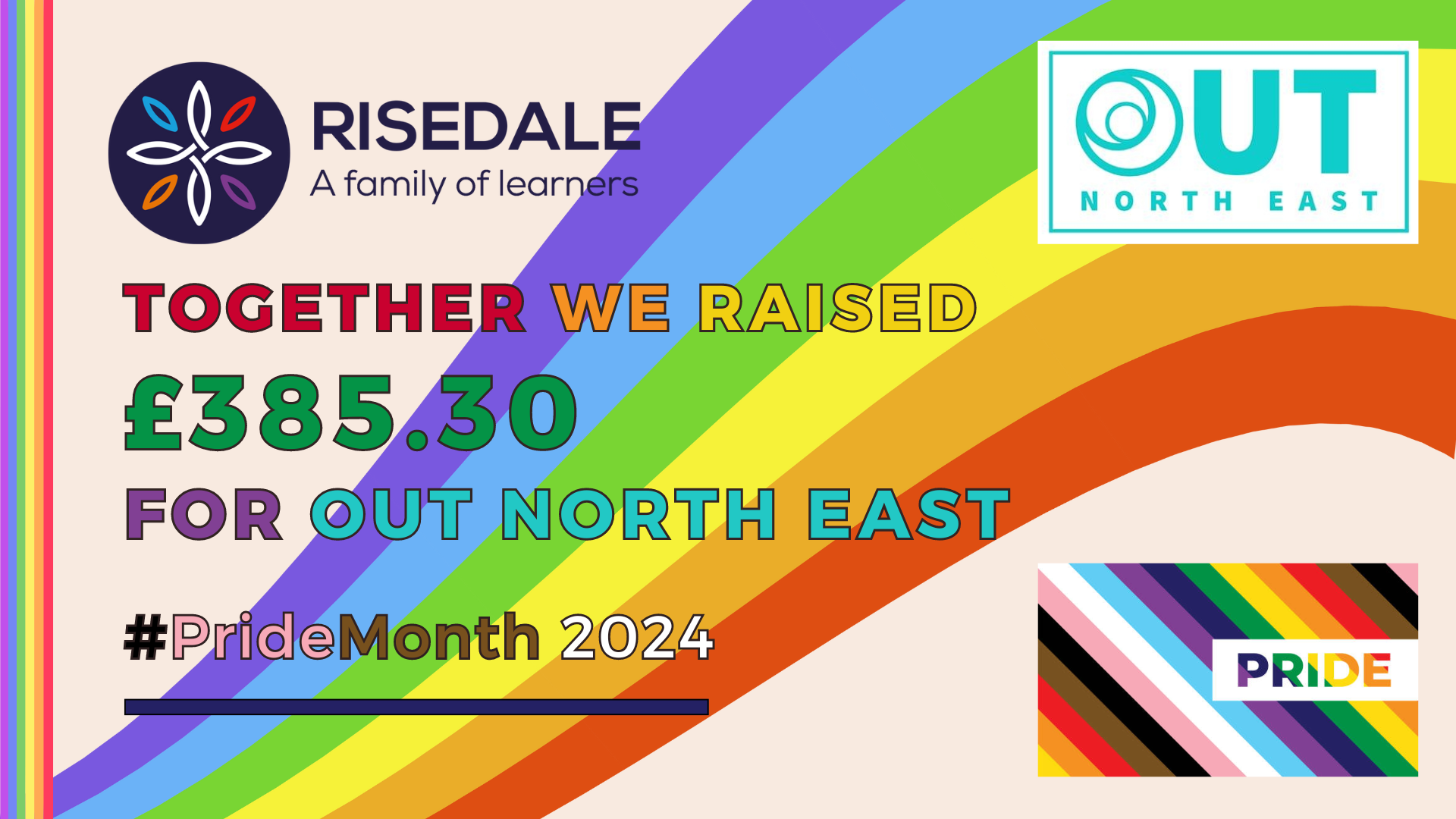 Together we raised an amazing £385.30 for Out North East! 🏳️🌈