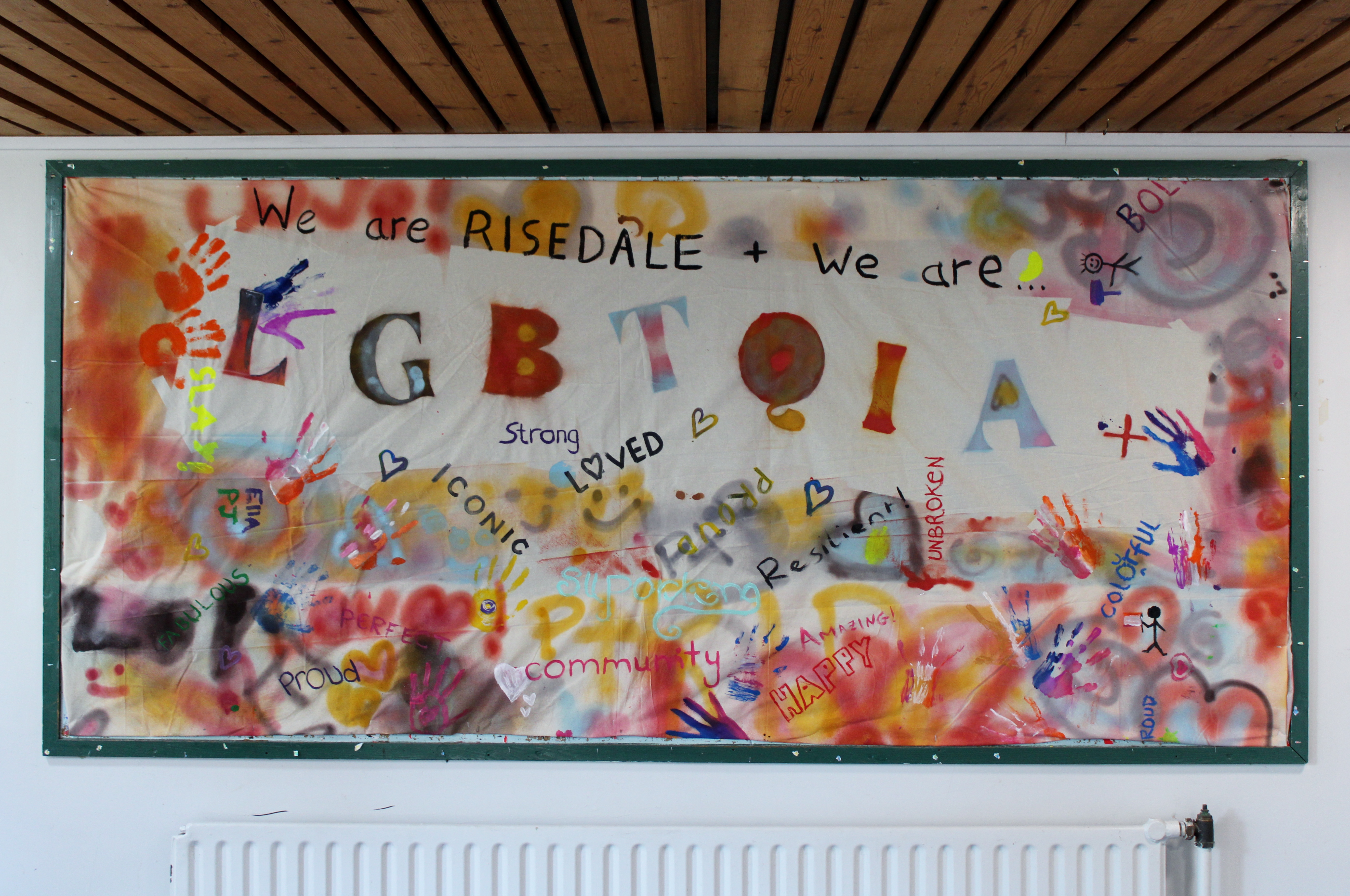 Throughout June, Risedale School took on a vibrant new look in celebration of Pride Month! The school canteen and flagpoles became a canvas of colour, adorned with Pride flags displayed proudly. Our ever-enthusiastic LGBTQIA+ Club wasn't to be outdone. They channelled their creativity into a fantastic new display for the link corridor. This eye-catching piece, a testament to their artistic talents, used mixed media, spray paints, and marker pens to create a truly special addition to the school.
