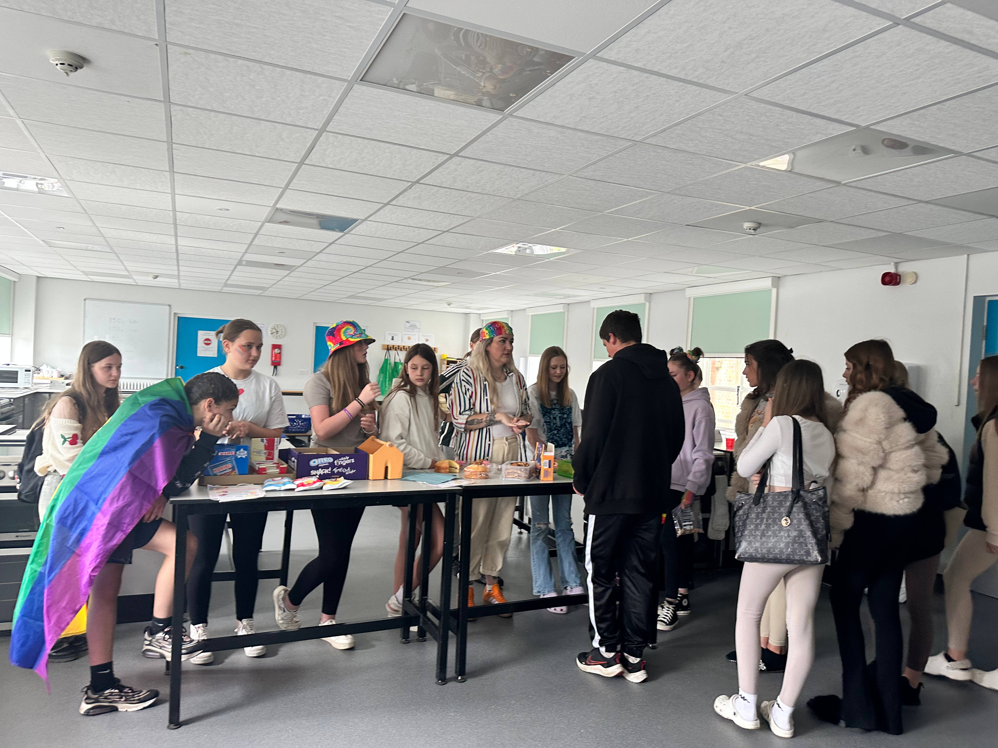 The month culminated in a rainbow-themed fun-filled Non-Uniform Day on Friday 28th June, where pupils donned their most colourful attire in a celebration of diversity. The LGBTQIA+ Club continued their fundraising efforts by hosting a bake sale alongside the Non-Uniform Day, adding even more to the total for Out North East. To top it all off, our inspiring Headteacher, Mr Colin Scott, addressed the entire school during a special Pride assembly.