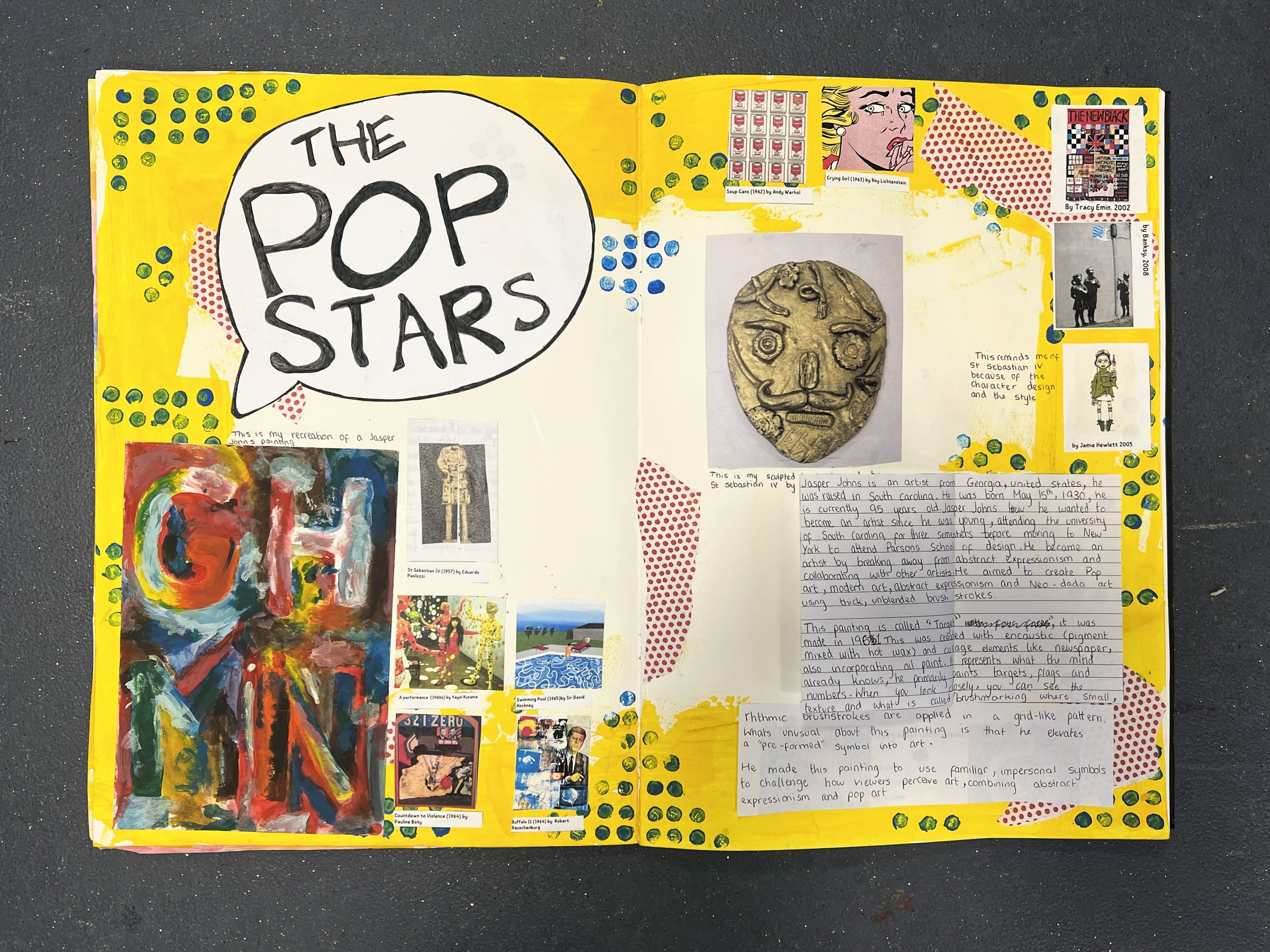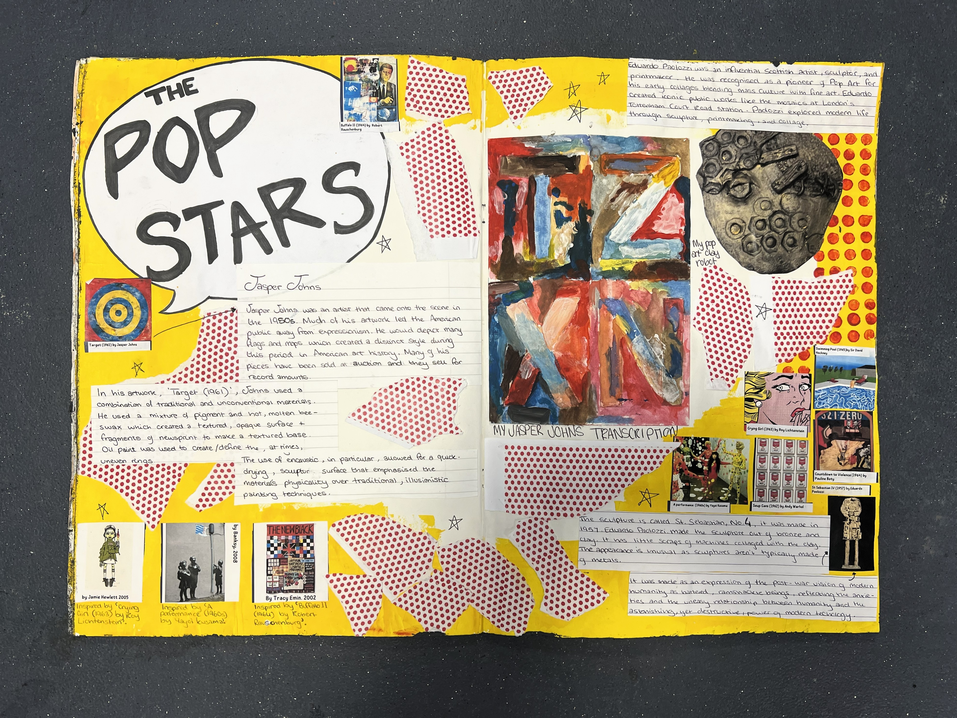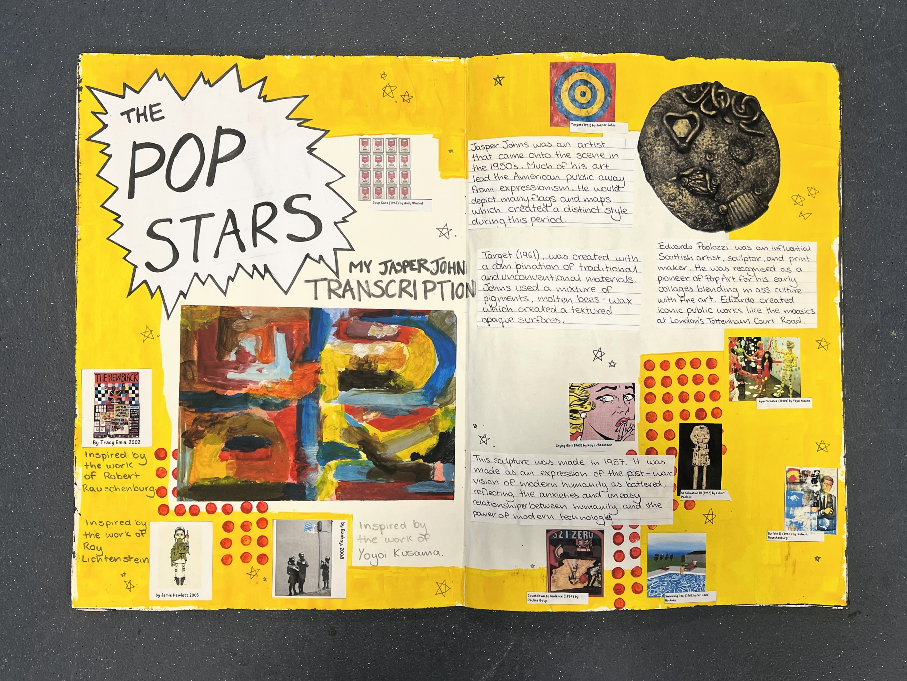 As a follow-up to the fantastic clay ‘Paolozzi’ sculptures made in Art last term, Year 9 have now completed their Pop Art projects, and aren’t they brilliant!!